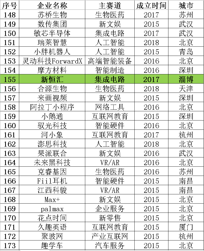 2020年9月,“2020中國(guó)潛在獨(dú)角獸企業(yè)研究報(bào)告發(fā)布會(huì)”在江西南昌舉辦。會(huì)上長(zhǎng)城戰(zhàn)略咨詢發(fā)布了中國(guó)首份《2020中國(guó)潛在獨(dú)角獸企業(yè)研究報(bào)告》,報(bào)告包括了2019年中國(guó)潛在獨(dú)角獸、2020年新晉潛在獨(dú)角獸兩份榜單。潛在獨(dú)角獸必須成立時(shí)間在十年之內(nèi),并且尚未上市的中國(guó)境內(nèi)企業(yè)。據(jù)了解,今年共有296家企業(yè)入選該榜單。其中,新恒匯作為集成電路賽道的代表企業(yè)列入該榜單。